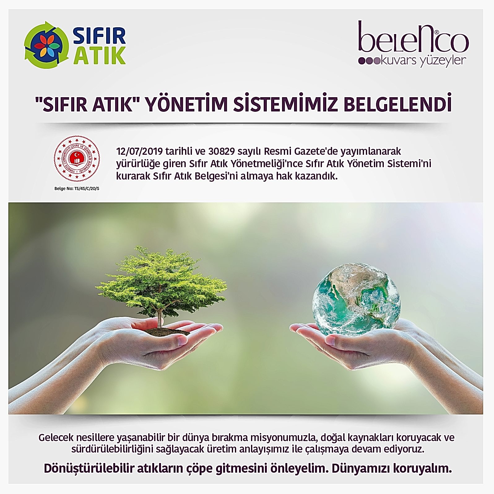 SIFIR ATIK YÖNETİM SİSTEMİMİZ BELGELENDİ!